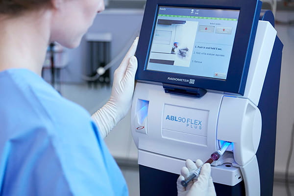 The ABL90 FLEX PLUS blood gas analyzer measures up to 19 parameters